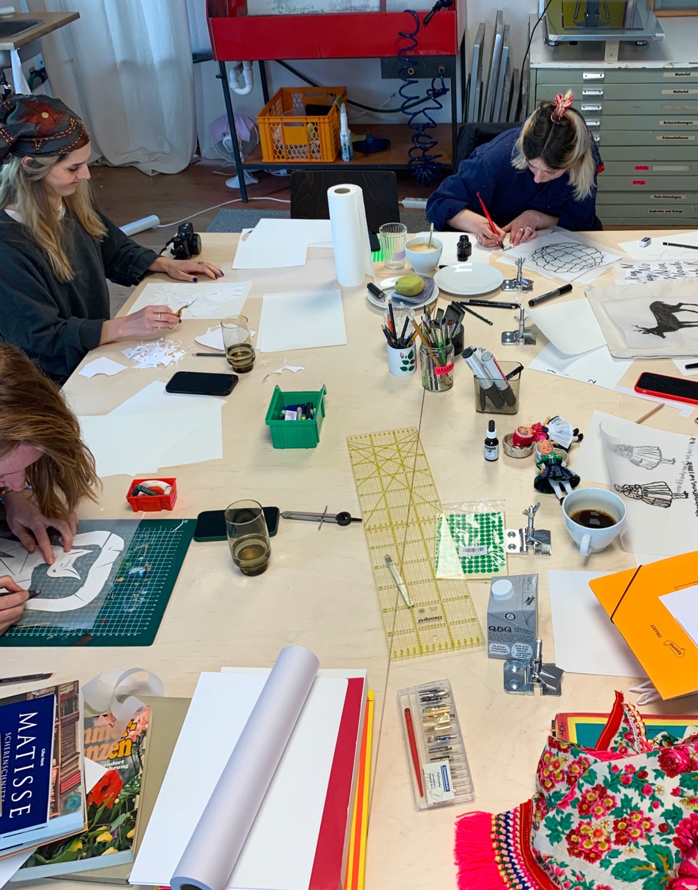 Ob Team-Event, Geburtstag, Babyshower oder einfach einen gesellig-kreativen Abend im Freund:innenkreis: Ich hecke mit euch gern ein auf euch und eure Bedürfnisse zugeschnittenes Event aus. Siebdruck Workshops und Zeichenabende, aber auch Cyanotypie (der Vorgänger der analogen Fotografie), Buchbinden oder oder oder …